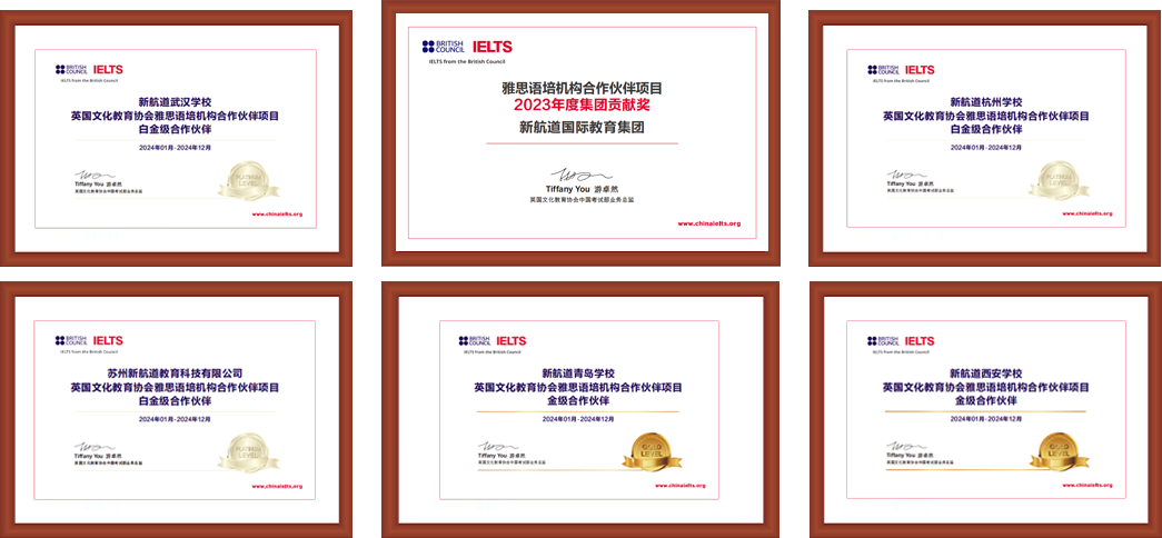 新航道国际教育集团由于在雅思及语言培训的领先地位,被雅思官方授予“集团贡献奖”的荣誉。